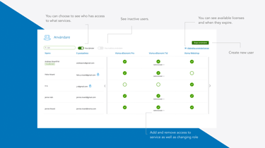 In this project, I was responsible for the redesign of the central platform used to manage user rights and roles for Visma services. The platform enables tasks such as purchasing licenses, adding or removing employees, modifying user access, and facilitating collaboration with accounting firms. As a UX Designer, I played a key role in shaping the user experience to align with business needs and enhance service usability.